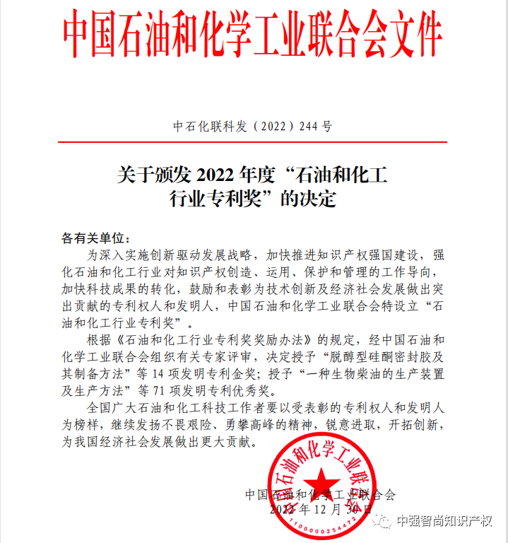 為(wèi)深入實施創新驅動發展戰略,加快(kuài)推進知(zhī)識産權強國(guó)建設,強 化(huà)石 油和(hé)化(huà)工(gōng)≤行(xíng) 業對(duì)知(zhī)識産權創造、運用(yòng)、保護和(hé)管理(lǐ)¥的(de)工(gōng)作(zuò)導向, 加快(kuài)科(kē)技(jì)成果的(de)轉化(huà),鼓勵和(hé)表彰為(wèi)技(jì)術(shù)創新及經濟社會(hu≤ì)發展做(zuò)出突 出貢獻的(de)專利權人(rén)和(hé)發明(míng)人(rén),中國(guó)石油和(hé)化(huà)↑學工(gōng)業聯合會(huì)特設立石 油和(hé)化(huà)工(gōng)行(xíng)業專利獎。 根據《石油和(hé)化(huà)工(gōng)行(xíng)業(yè÷)專利獎獎勵辦法》的(de)... [2023-02-21]